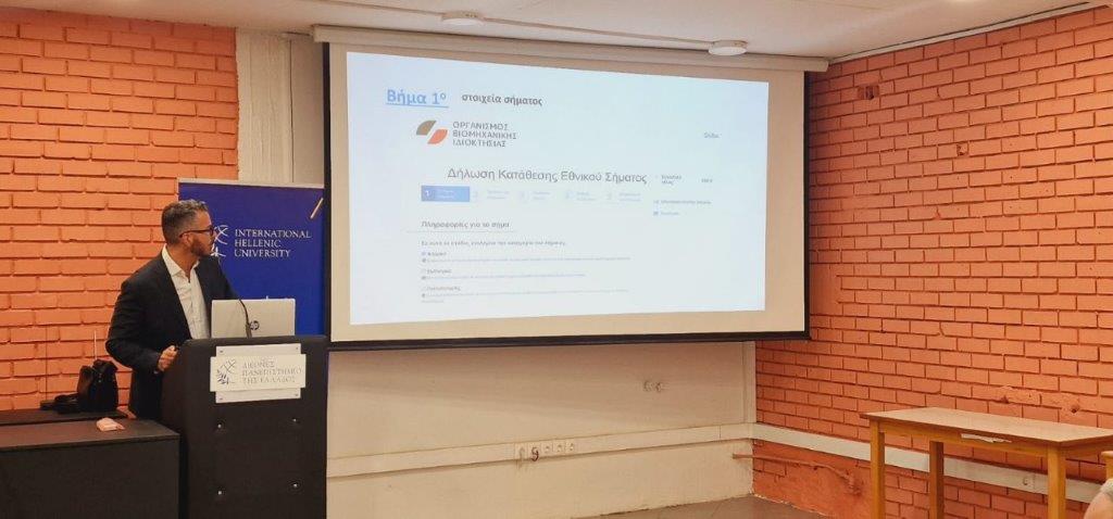 Για το εμπορικό Σήμα ως Τίτλο Διανοητικής Ιδιοκτησίας πραγματοποίησε παρουσίαση η κυρία Ματίνα Χρυσοχοϊδου, Διευθύντρια Εμπορικών Σημάτων ΟΒΙ και για τις διαδικασία Κατάθεσης Εμπορικού Σήματος, ειδικότερα την Ηλεκτρονική Κατάθεση, ενημέρωσε με λεπτομέρεια ο κ. Γιώργος Κεφαλογιάννης, Υπεύθυνος Ηλεκτρονικής Κατάθεσης ΟΒΙ.