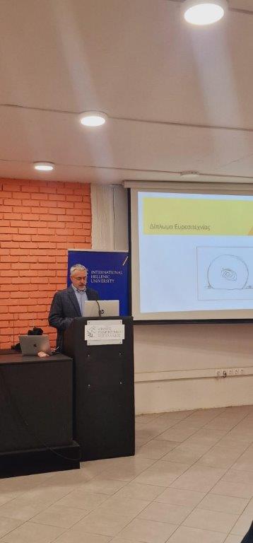 Ο Δρ. Γιώργος Ασημόπουλος, υπεύθυνος του Περιφερειακού Γραφείου του ΟΒΙ στη Θεσσαλονίκη, μίλησε για την παροχή Τεχνολογικής Πληροφόρησης, καθώς και όλους τους τίτλους προστασίας και τις υπηρεσίες που προσφέρει ο Οργανισμός στην ακαδημαϊκή & επιχειρηματική κοινότητα, αλλά και το ευρύτερο κοινό.