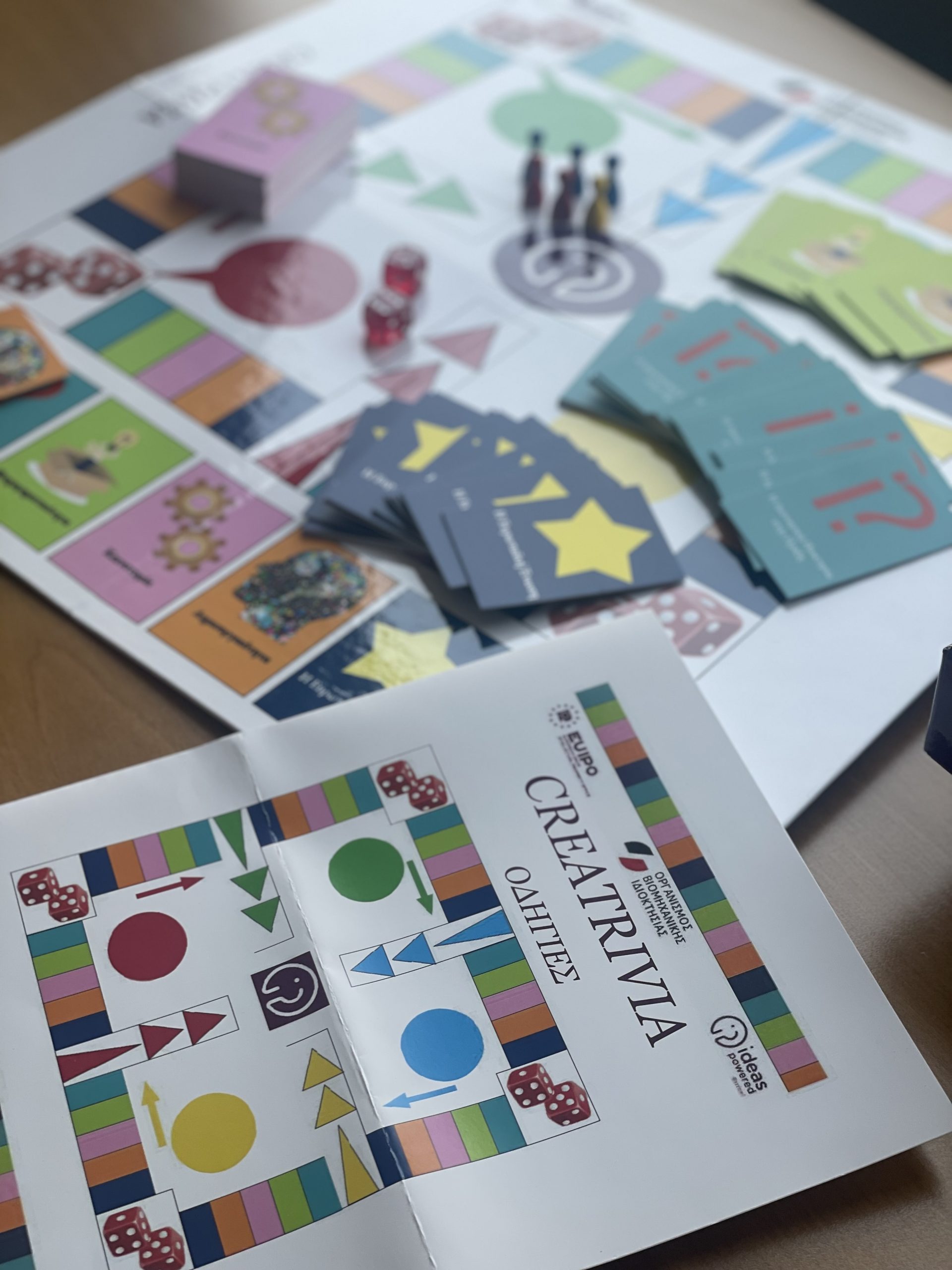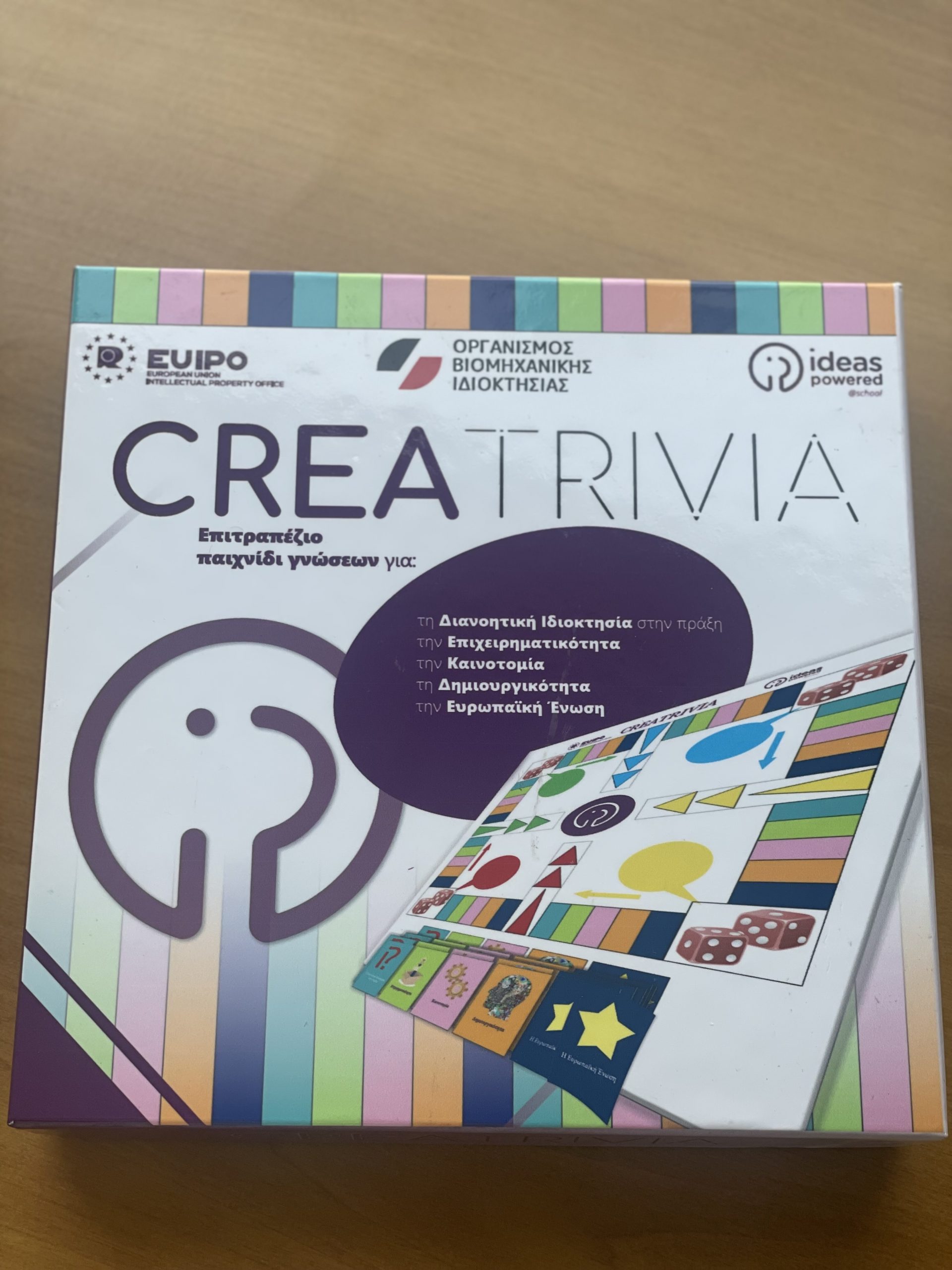For this reason, the Hellenic Industrial Property Organisation (OBI) has adapted and produced in Greek the educational board game CREATRIVIA, which helps teenagers understand Intellectual Property (IP) through fun and creativity. The game was originally designed by the European Union Intellectual Property Office (EUIPO).