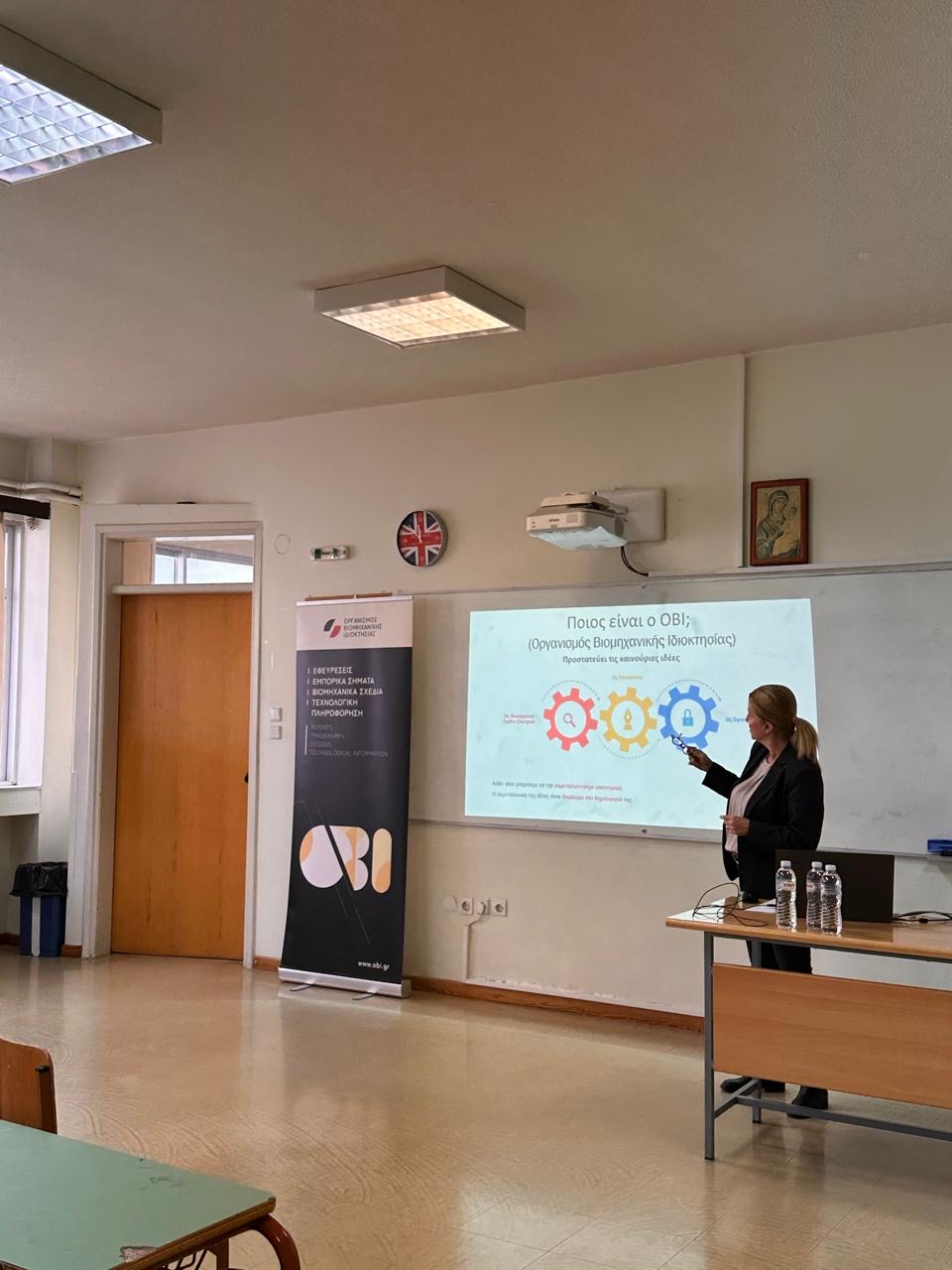 The activity was carried out by members of the Hellenic Industrial Property Organisation, specifically Ms. Rania Zacharopoulou, Head of the Communication Department, Elvira Georgiadou, Lawyer at OBI and  Dr. George Asimopoulos, Regional Representative of OBI in Thessaloniki.