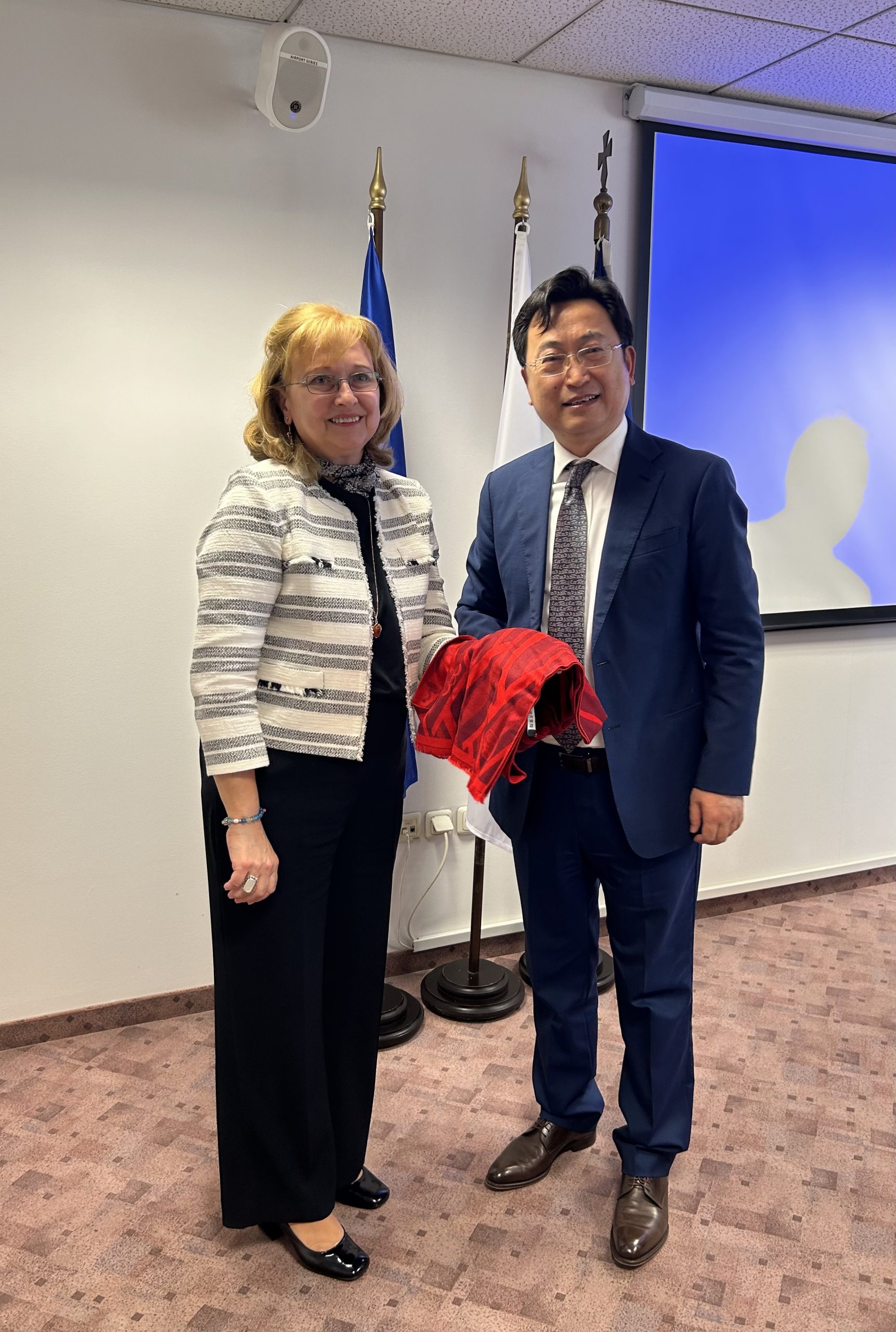 The heads of the delegations, Mr. Panagiotis Kanellopoulos, General Director of OBI, and Mr. Danlu Li, Deputy Commissioner of CNIPA, welcomed the cooperation between the two national offices, which dates to 2017, and emphasized the importance of Industrial Property as a strategic tool for development.