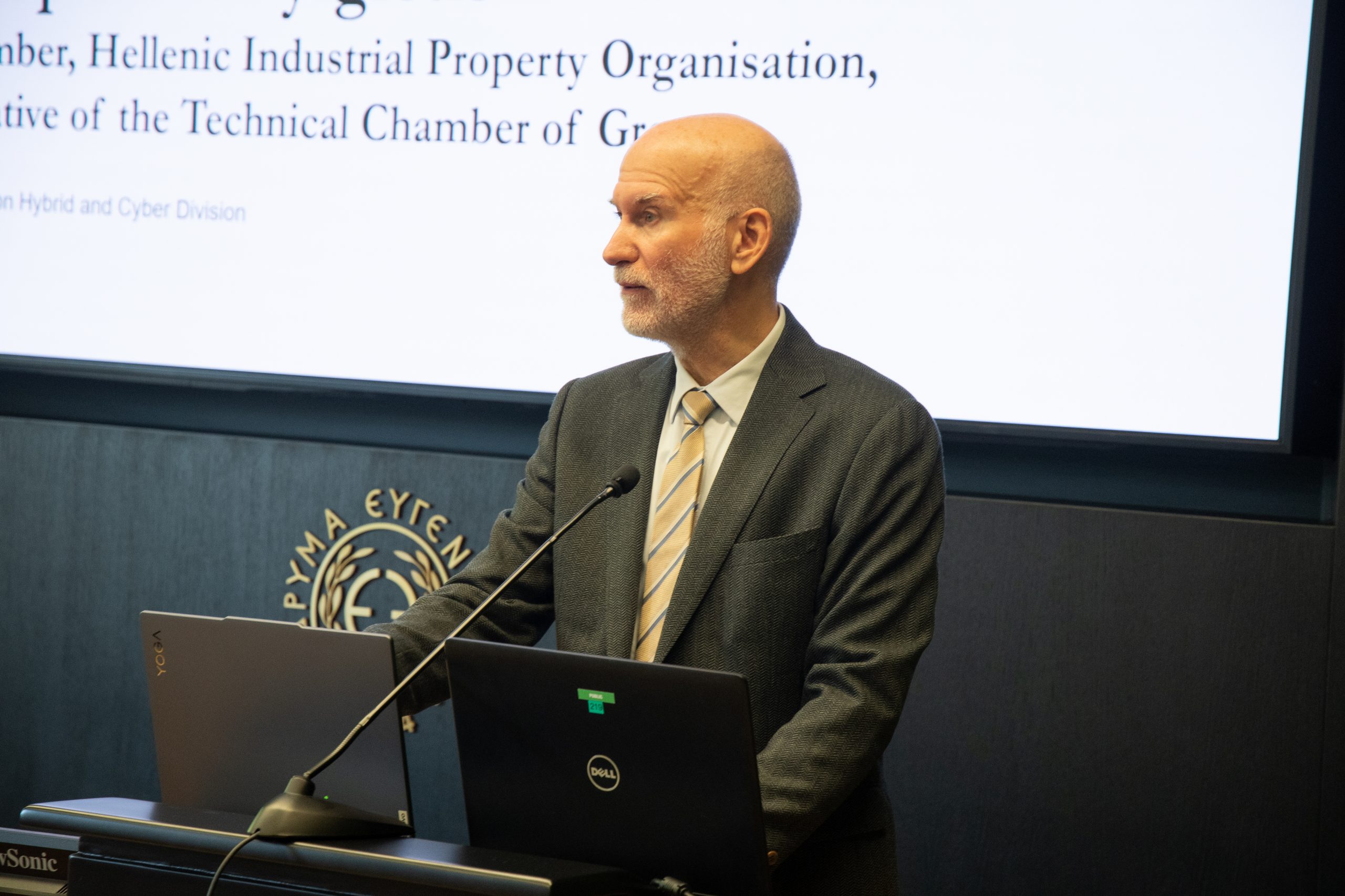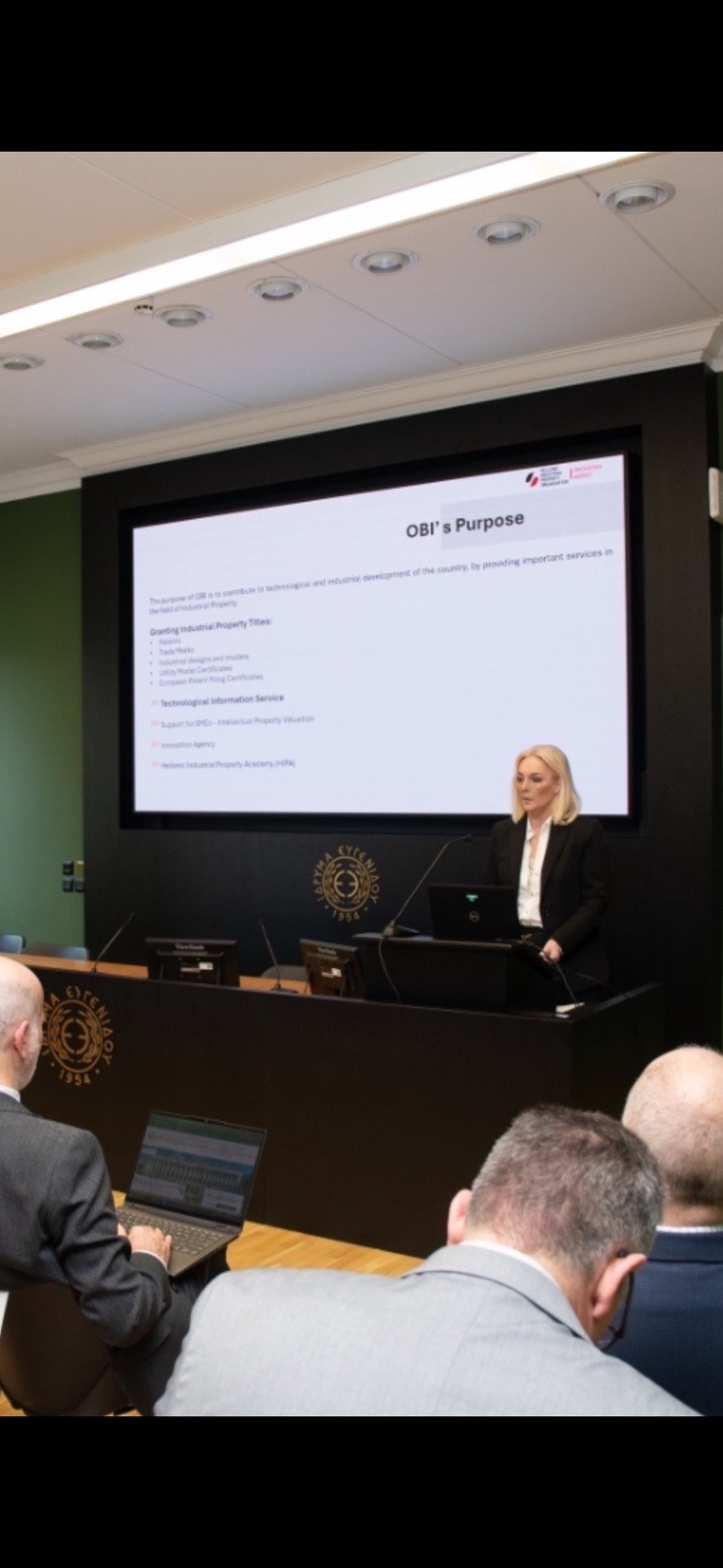 OBI was represented by Dr. Lambros Pyrgiotis, member of the Board of Directors and representative of the Technical Chamber of Greece (TCG), while the keynote speaker was Ms. Uiouli Papapostolou, Director of Technological Information and Head of the Innovation Agency, also a member of TCG.