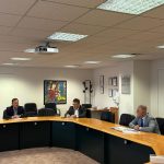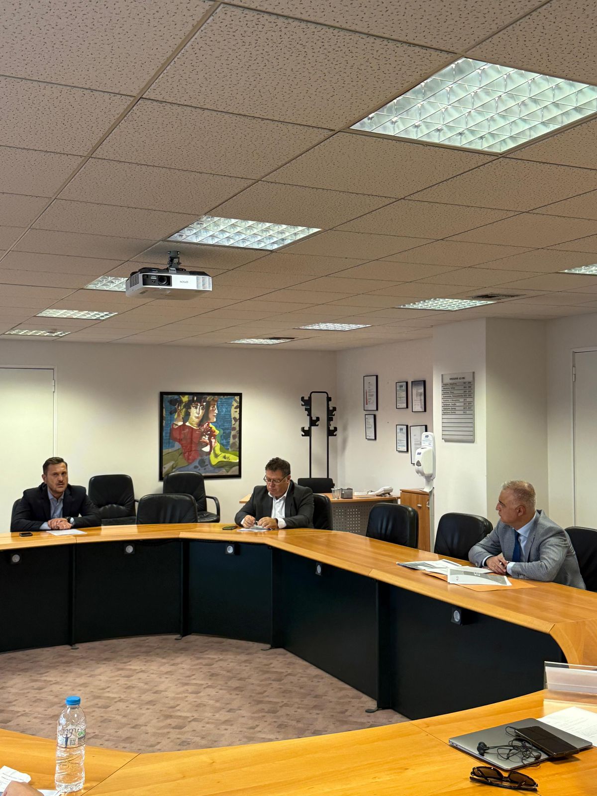 The Deputy Minister of Development, Mr. Lazaros Tsavdaridis, paid a visit to the headquarters of the Hellenic Industrial Property Organisation (OBI), where he met with the President of the Board of Directors, Mr. Dimitris Chronis, the Vice President, Mr. Leonidas Dragoumanos, the Director General, Mr. Panagiotis Kanellopoulos, members of the Board, as well as employees of the Organisation.