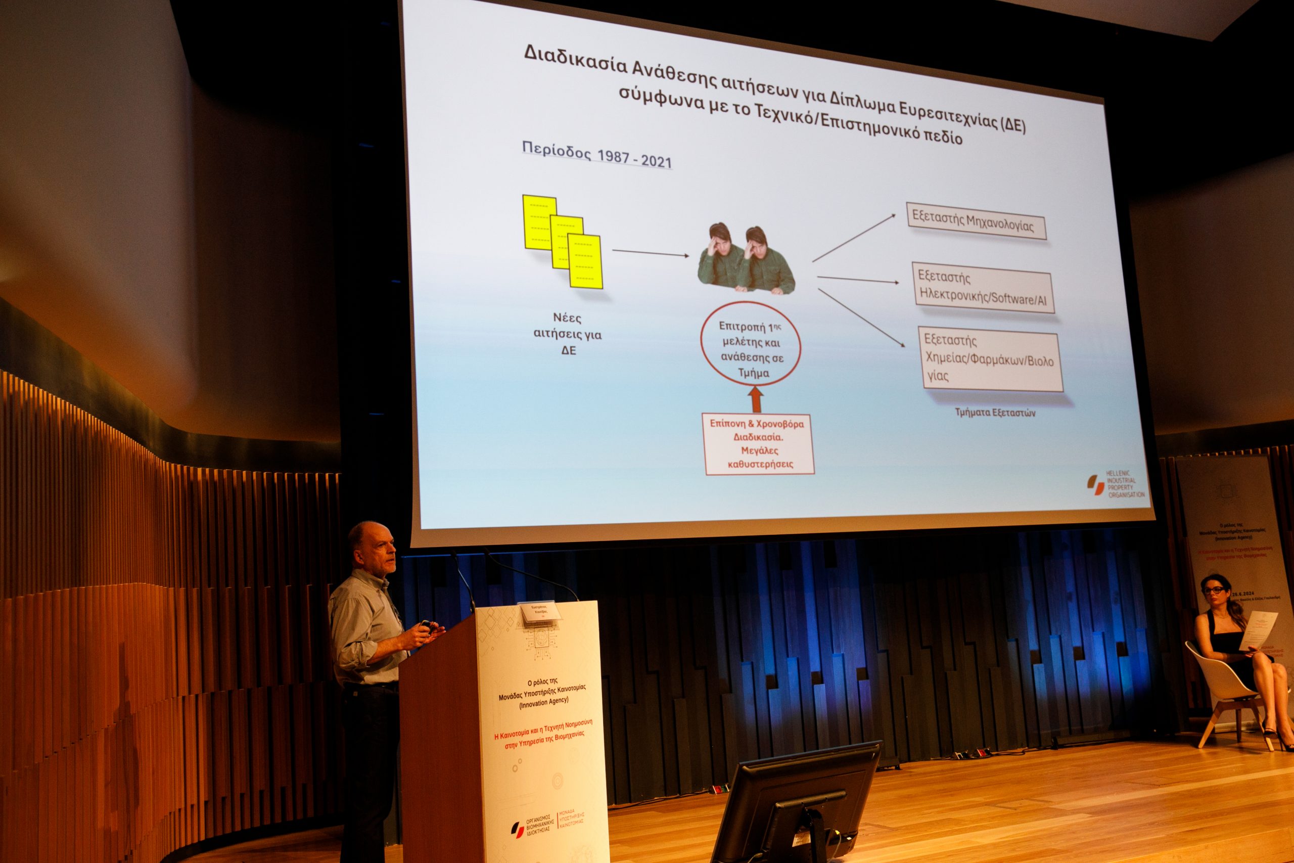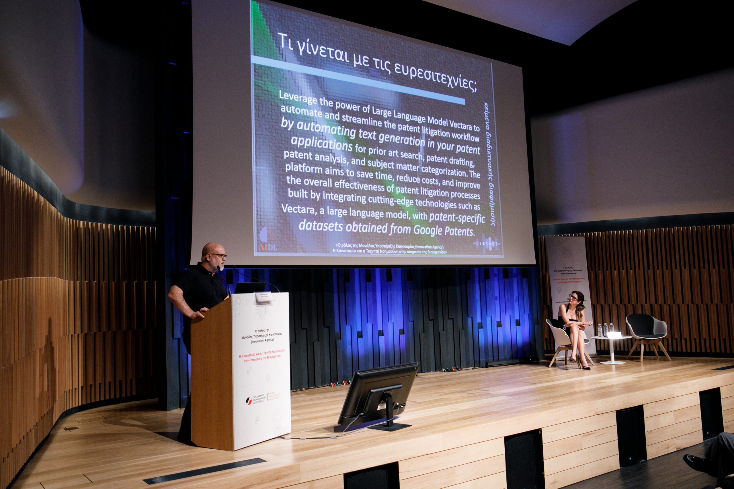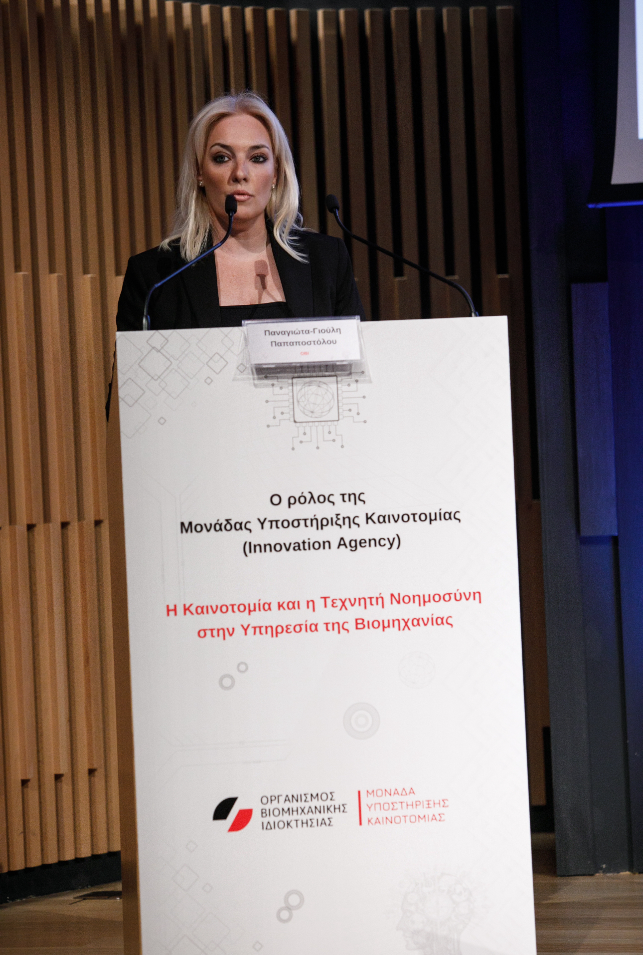 Με επιτυχία πραγματοποιήθηκε η ενημερωτική Ημερίδα του Οργανισμού Βιομηχανικής Ιδιοκτησίας (ΟΒΙ) την Τετάρτη 26 Ιουνίου 2024, στο αμφιθέατρο του Ιδρύματος Βασίλη & Ελίζας Γουλανδρή, που στόχο είχε την εναρκτήρια παρουσίαση της νεοσύστατής υπηρεσίας του Οργανισμού, της Μονάδας Υποστήριξης Καινοτομίας (Innovation Agency), αλλά και την ανάδειξη της τεχνολογίας της Τεχνητής Νοημοσύνης και πώς πραγματώνεται στη Βιομηχανία.