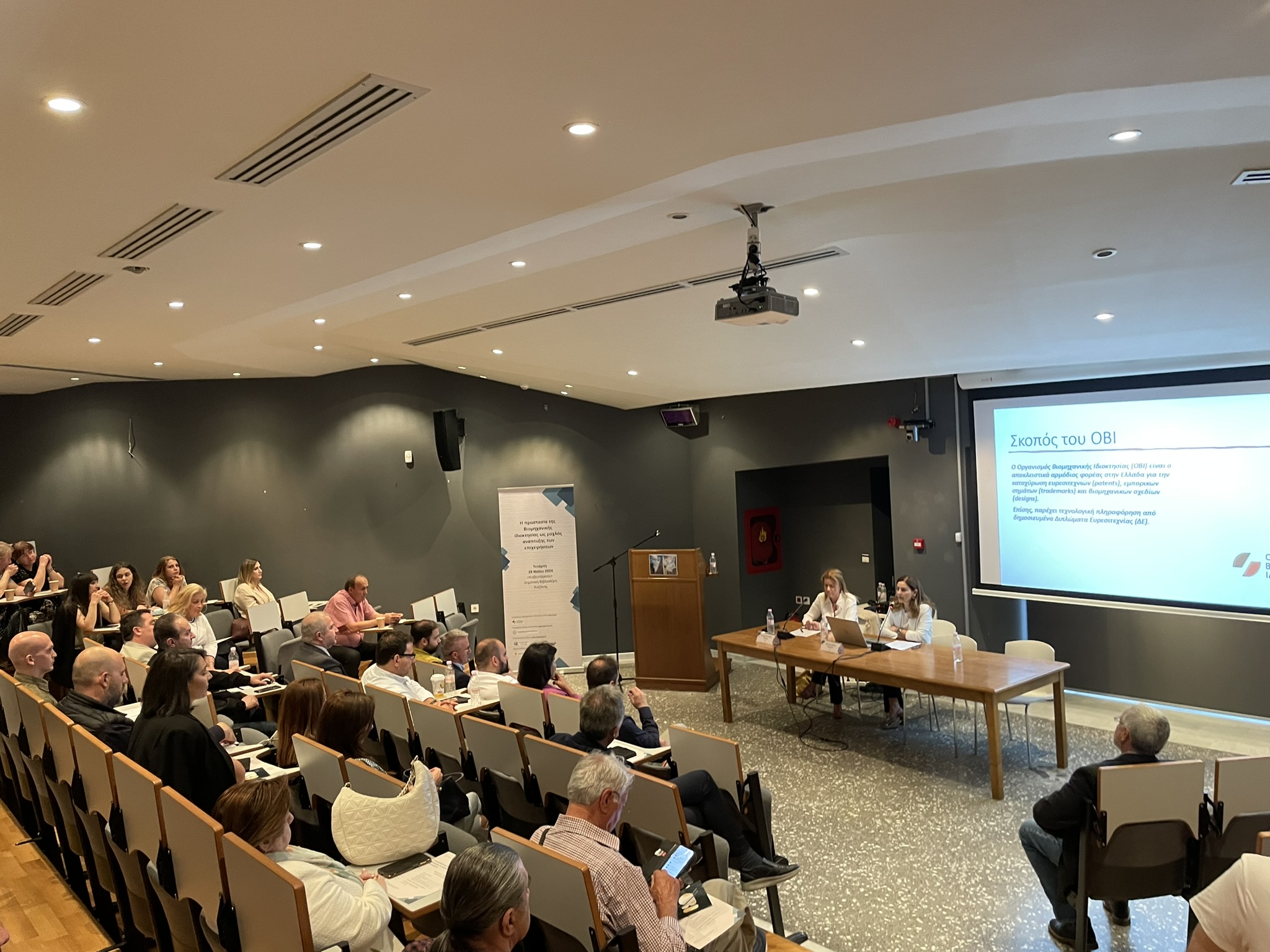 Το παριστάμενο κοινό, αποτελούμενο από στελέχη της ακαδημαϊκής και επιχειρηματικής κοινότητας της ευρύτερης περιοχής, είχε τη μοναδική ευκαιρία να ενημερωθεί για τους τίτλους προστασία που προσφέρει στο κοινό του ο ΟΒΙ. Για την προστασία των εφευρέσεων με Διπλώματα Ευρεσιτεχνίας, πραγματοποίησε εξειδικευμένη παρουσίαση ο Δρ. Γιώργος Ασημόπουλος, Υπεύθυνος του Περιφερειακού Γραφείου του ΟΒΙ στη Θεσσαλονίκη και ακολούθησε παρουσίαση της κυρίας Ματίνας Χρυσοχοΐδου, Διευθύντριας Εμπορικών Σημάτων στον ΟΒΙ, με τίτλο «Η προστασία των εμπορικών σημάτων στην Ελλάδα».