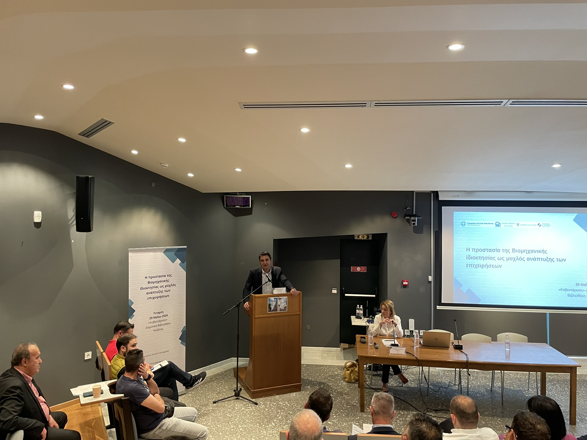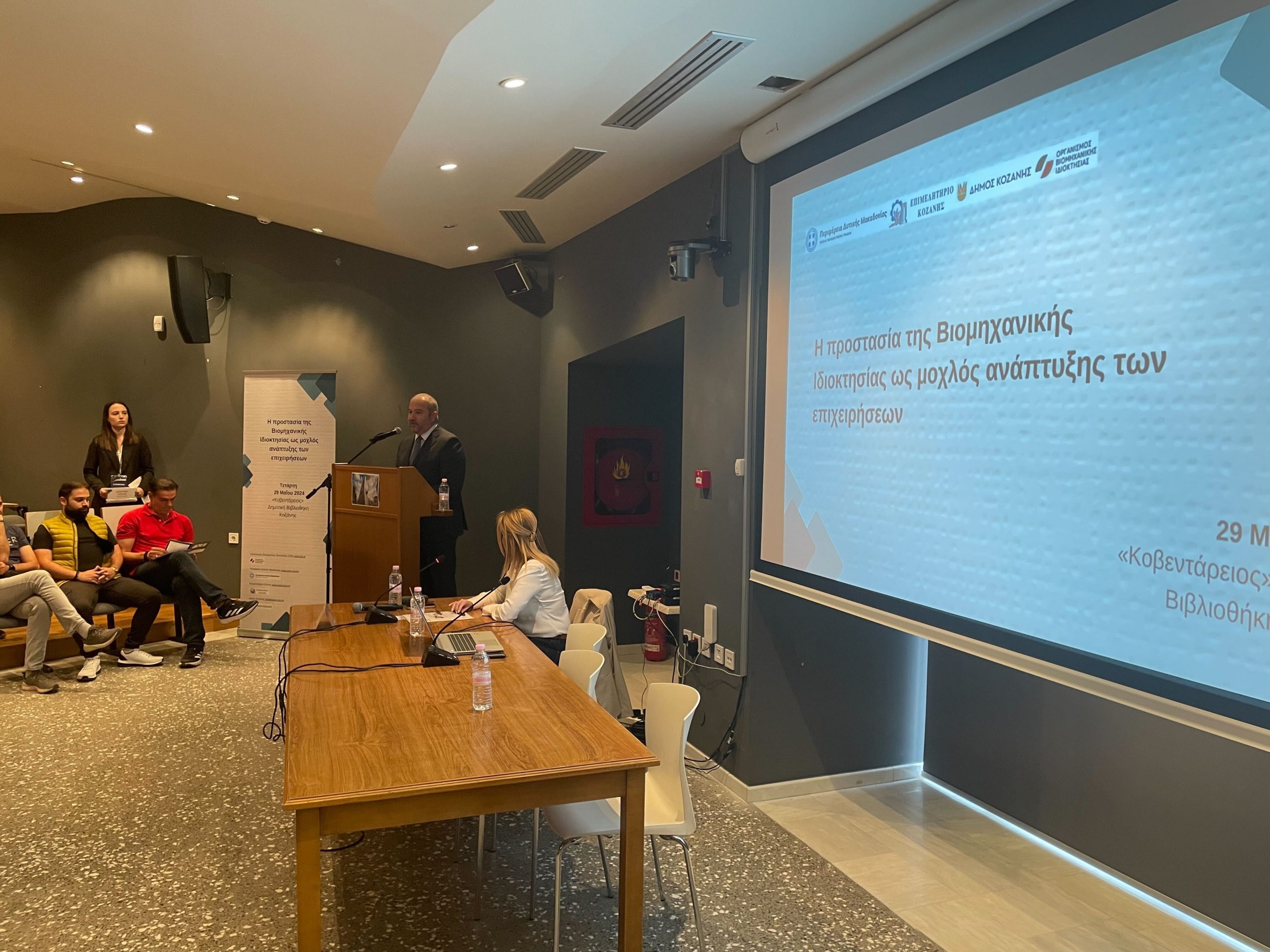 Η εκδήλωση πραγματοποιήθηκε την Τετάρτη 29 Μαΐου 2024 στην «Κοβεντάρειο» Δημοτική Βιβλιοθήκη Κοζάνης, με στόχο την ενημέρωση για τη σημασία της Βιομηχανικής Ιδιοκτησίας στην ανάπτυξη των επιχειρήσεων, καθώς και για την προστιθέμενη αξία που αυτή προσδίδει σε επιχειρήσεις και προϊόντα.