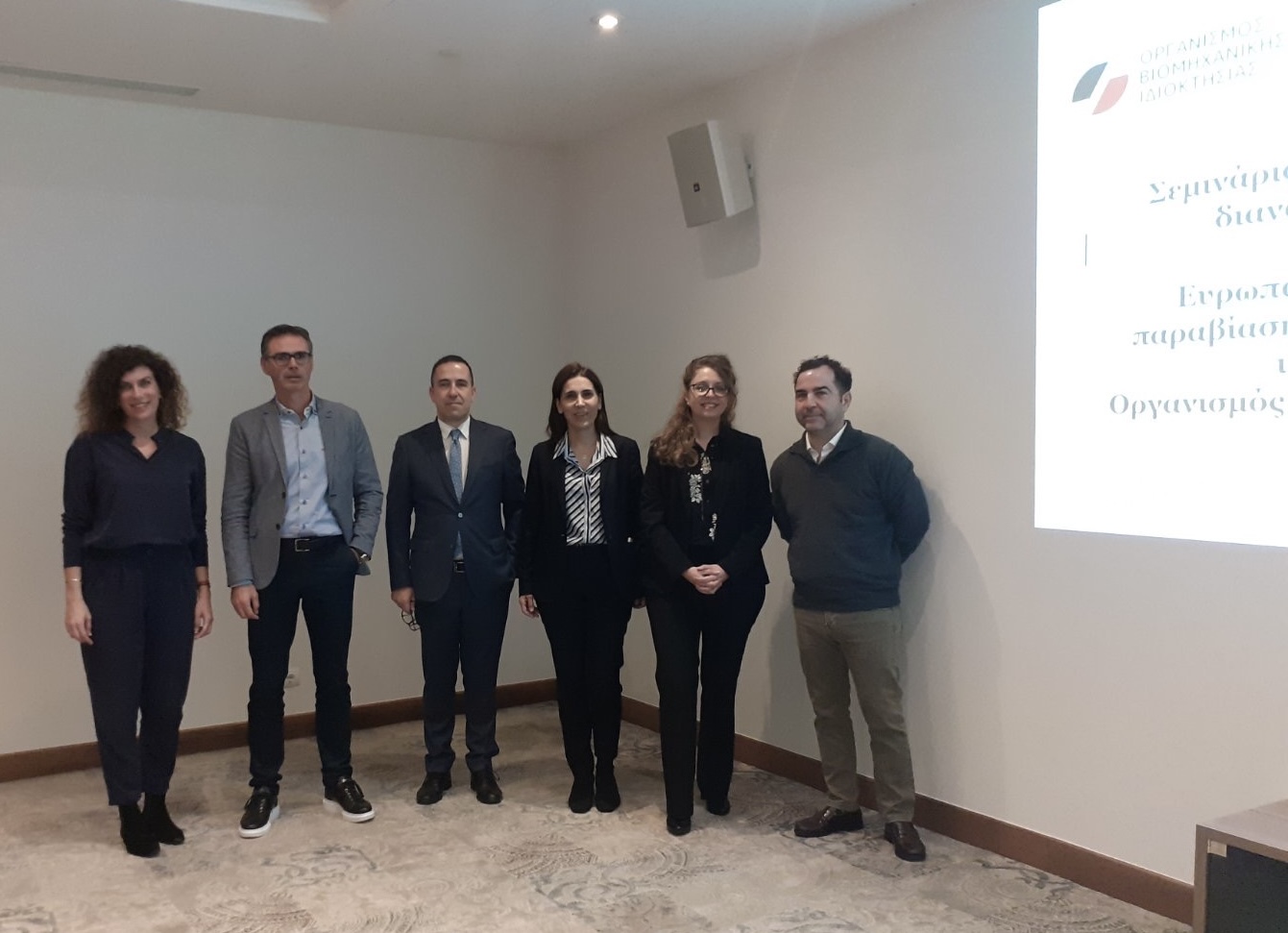 Χαιρετισμό εκ μέρους του ΟΒΙ παραγματοποίησε η κυρία Μυρτώ Λάμπρου Μάουρερ, Προϊσταμένη Διεθνών Θεμάτων στον ΟΒΙ, η οποία συντόνισε το σεμινάριο. Tόνισε τη σημασία της επιβολής των δικαιωμάτων διανοητικής ιδιοκτησίας για την αποτελεσματική προστασία τους και ευχαρίστησε τους ομιλητές, διαβεβαίωσε δε ότι θα οργανωθούν και νέα σεμινάρια προς τις διωκτικές αρχές.