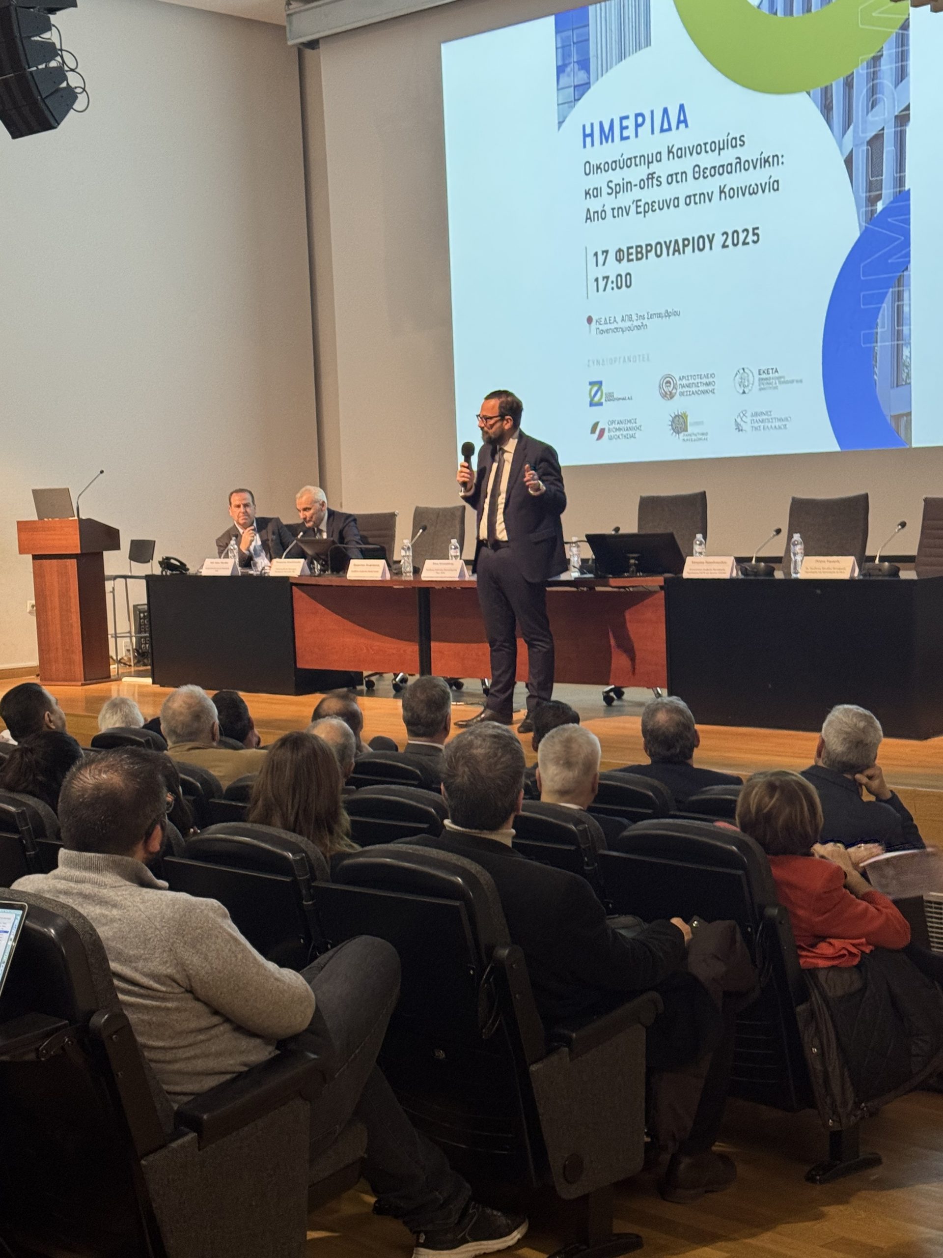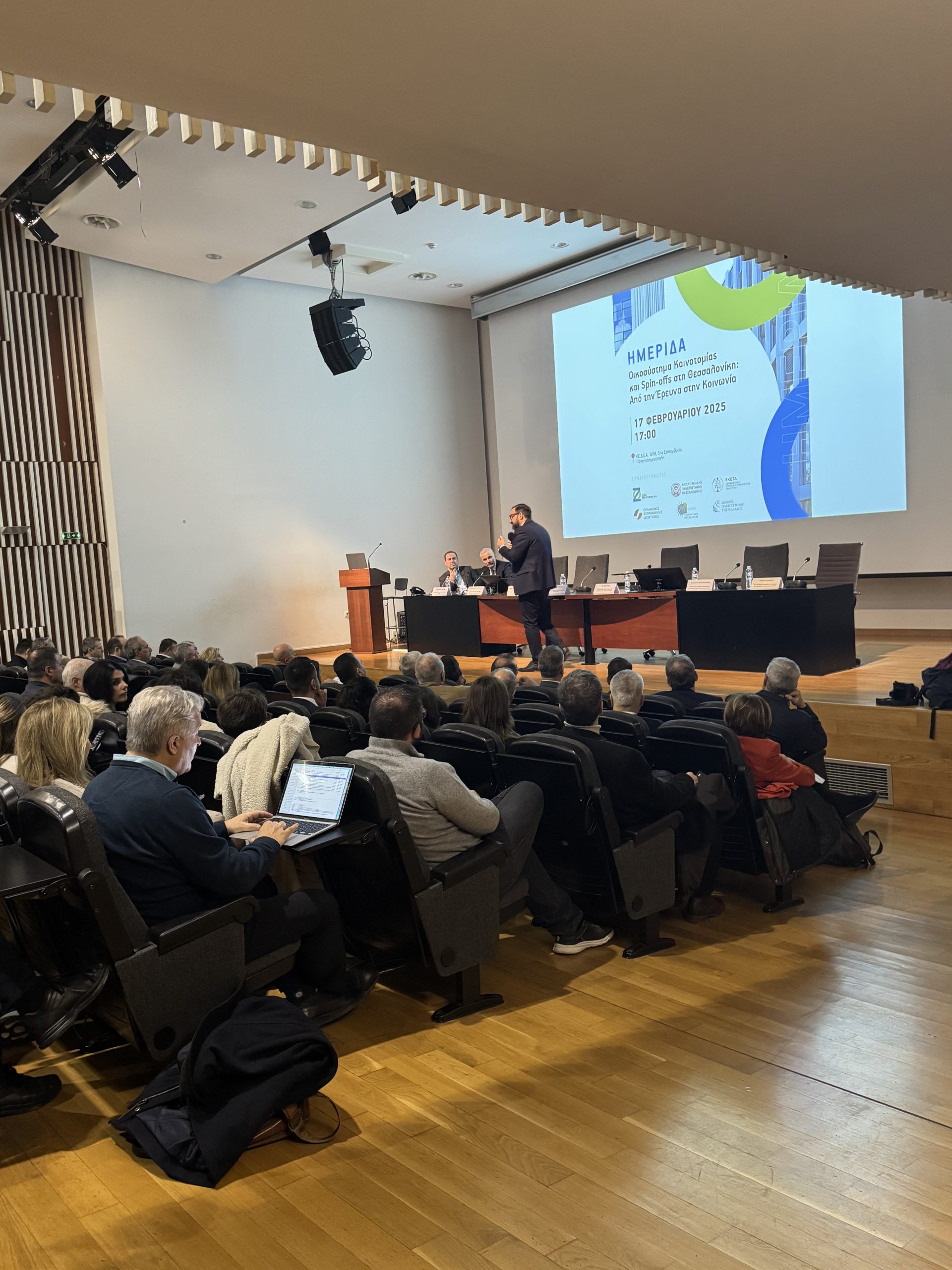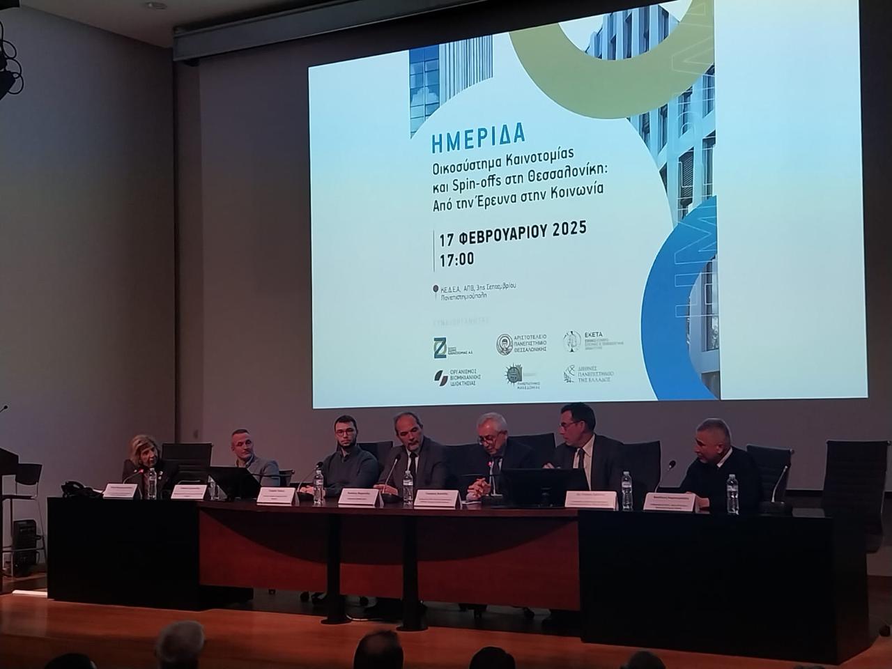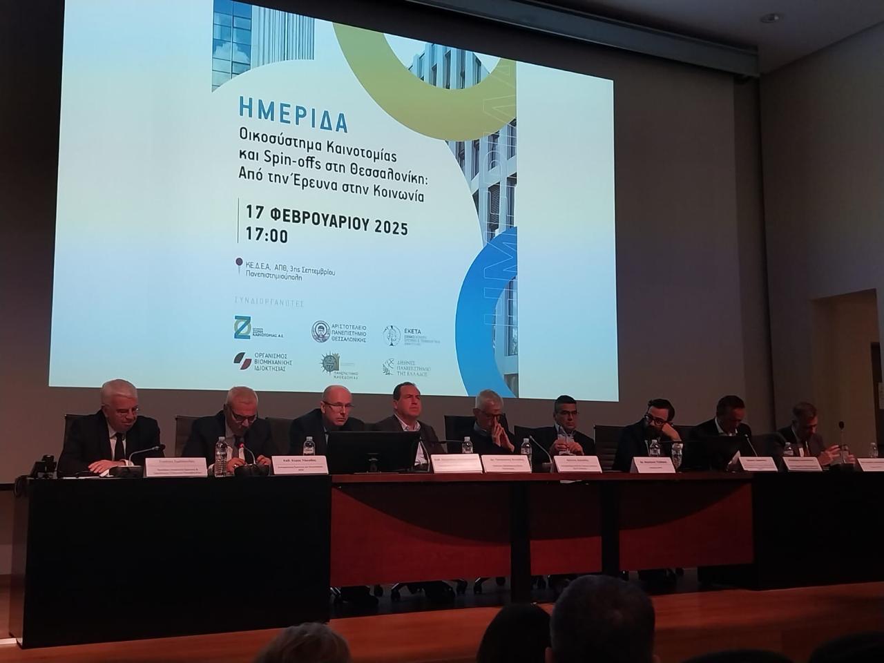 Με επιτυχία πραγματοποιήθηκε η ενδιαφέρουσα Ημερίδα για το Οικοσύστημα της Καινοτομίας χθες Δευτέρα 17 Φεβρουαρίου 2025, στο Κέντρο Διάδοσης Ερευνητικών Αποτελεσμάτων (ΚΕΔΕΑ) του ΑΠΘ στη Θεσσαλονίκη, η οποία έφερε τον τίτλο “Οικοσύστημα Καινοτομίας και Spinoffs στη Θεσσαλονίκη: Από την Έρευνα στην Κοινωνία”.