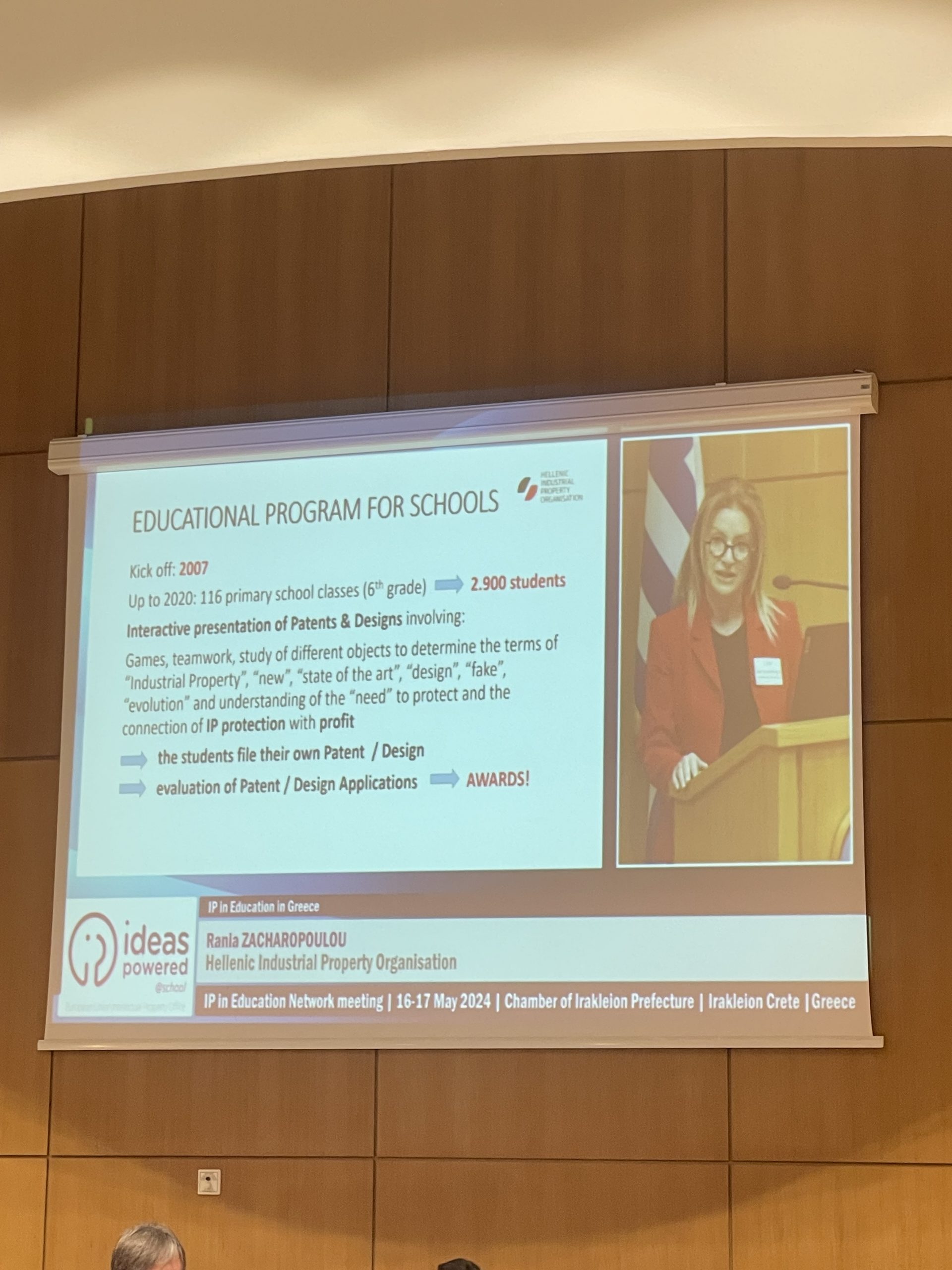 Ακολούθησε η Υπεύθυνη Ευρωπαϊκών Προγραμμάτων στο Υπουργείο Παιδείας, Θρησκευμάτων και Αθλητισμού Παναγιωτα Καρκαλέτση, η οποία παρουσίασε εκ μέρους της χώρας μας τις εκπαιδευτικές συντεταγμένες και curriculum σχετικά με τη Διανοητική Ιδιοκτησία στην Εκπαίδευση. Η Προϊσταμένη Τμήματος Πληροφόρησης στον Οργανισμό Πνευματικής Ιδιοκτησίας (ΟΠΙ) Εύα Κοκκίνου, εξήγησε τους τρόπους και τις εκπαιδευτικές πρακτικές που παρέχουν στη χώρα μας το Greek Copyright School, καθώς και άλλες δράσεις του φορέα.