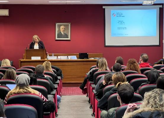 Η κυρία Emilie Scheffer, μέλος του Cabinet of the Boards of Appeal EUIPO, παρουσίασε αρχικά το θεσμό και τη λειτουργία του Boards of Appeal του Ευρωπαϊκού Γραφείου και στη συνέχεια με παραδείγματα από τη νομολογία του δικαστηρίου, και στο πλαίσιο ενός διαλόγου με τους φοιτητές, εξήγησε τους απόλυτους λόγους απαραδέκτου.