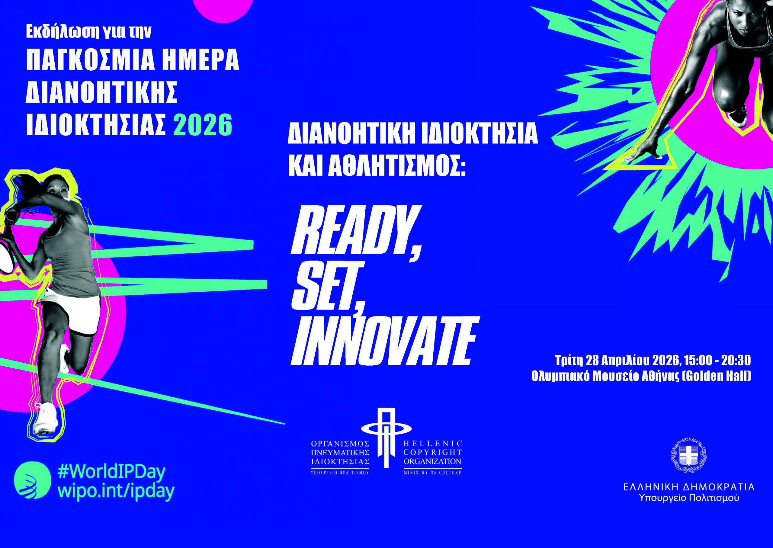 Με επιτυχία ολοκληρώθηκε η εκδήλωση «Διανοητική Ιδιοκτησία και Αθλητισμός: Ready, Set, Innovate!», που διοργάνωσε ο Οργανισμός Πνευματικής Ιδιοκτησίας την Τρίτη 28 Απριλίου 2026, στο Ολυμπιακό Μουσείο Αθήνας (Golden Hall), στο πλαίσιο της Παγκόσμιας Ημέρας Διανοητικής Ιδιοκτησίας για το 2026.