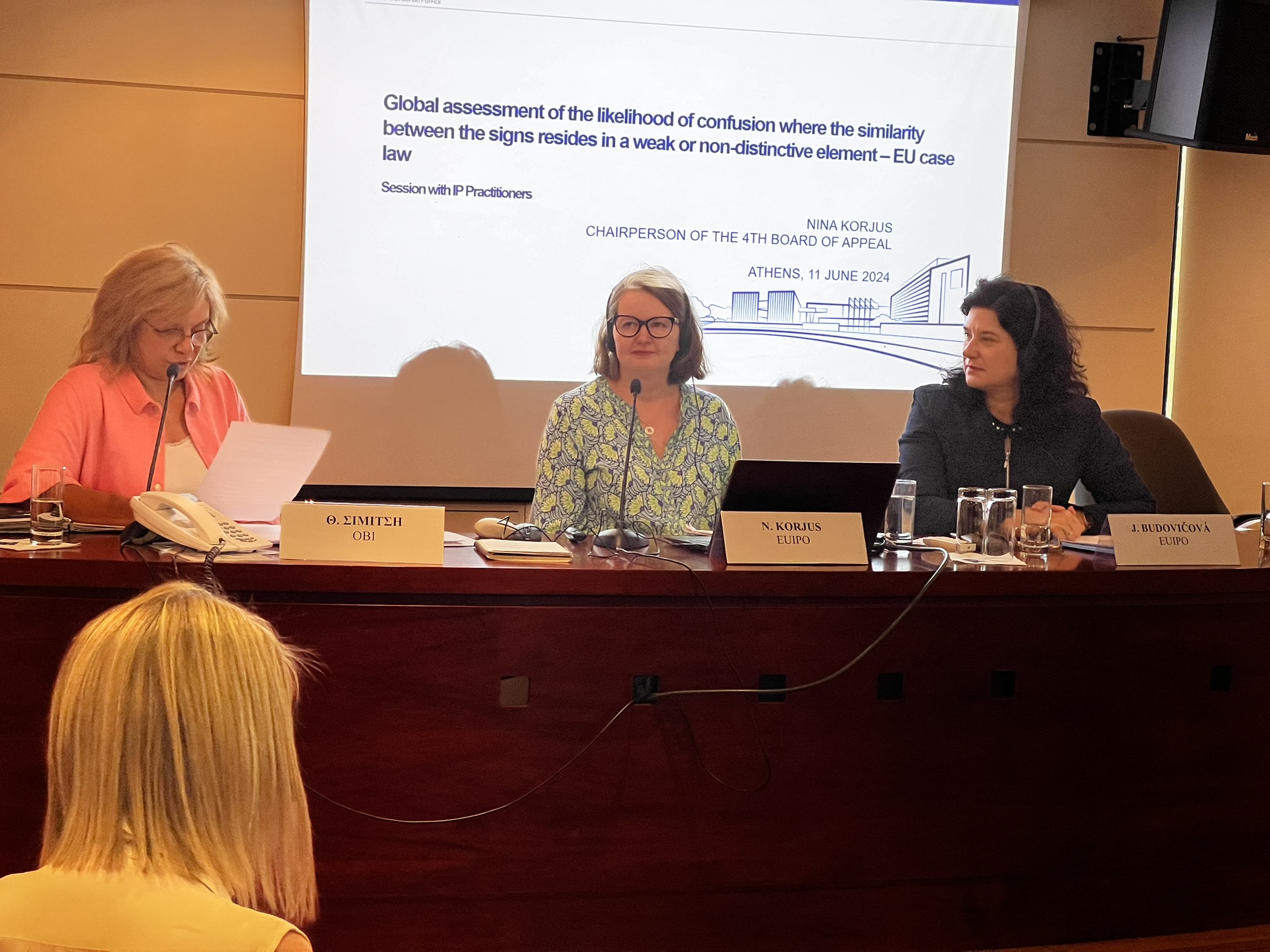 Στην εκδήλωση πραγματοποίησαν εισηγήσεις συνεργάτες του Ευρωπαϊκού Γραφείου με βαθιά γνώση επί των θεμάτων. Συγκεκριμένα, ο κ. Gordon Humphreys, Προσωρινός Πρόεδρος των Συμβουλίων Προσφυγών του EUIPO, η κυρία Μαρία Μπρά, μέλος του Συμβουλίου Προσφυγών από το 2003 η οποία ανάλαβε την Προεδρία του Πρώτου Συμβουλίου Προσφυγών από τον Οκτώβριο του 2023, η κυρία Nina Korjus, Πρόεδρος του Τέταρτου Συμβουλίου Προσφυγών του EUIPO και η κυρία Janka Budovičová, Διευθύντρια Προγραμμάτων Συνεργασίας των Συμβουλίων Προσφυγών του EUIPO.