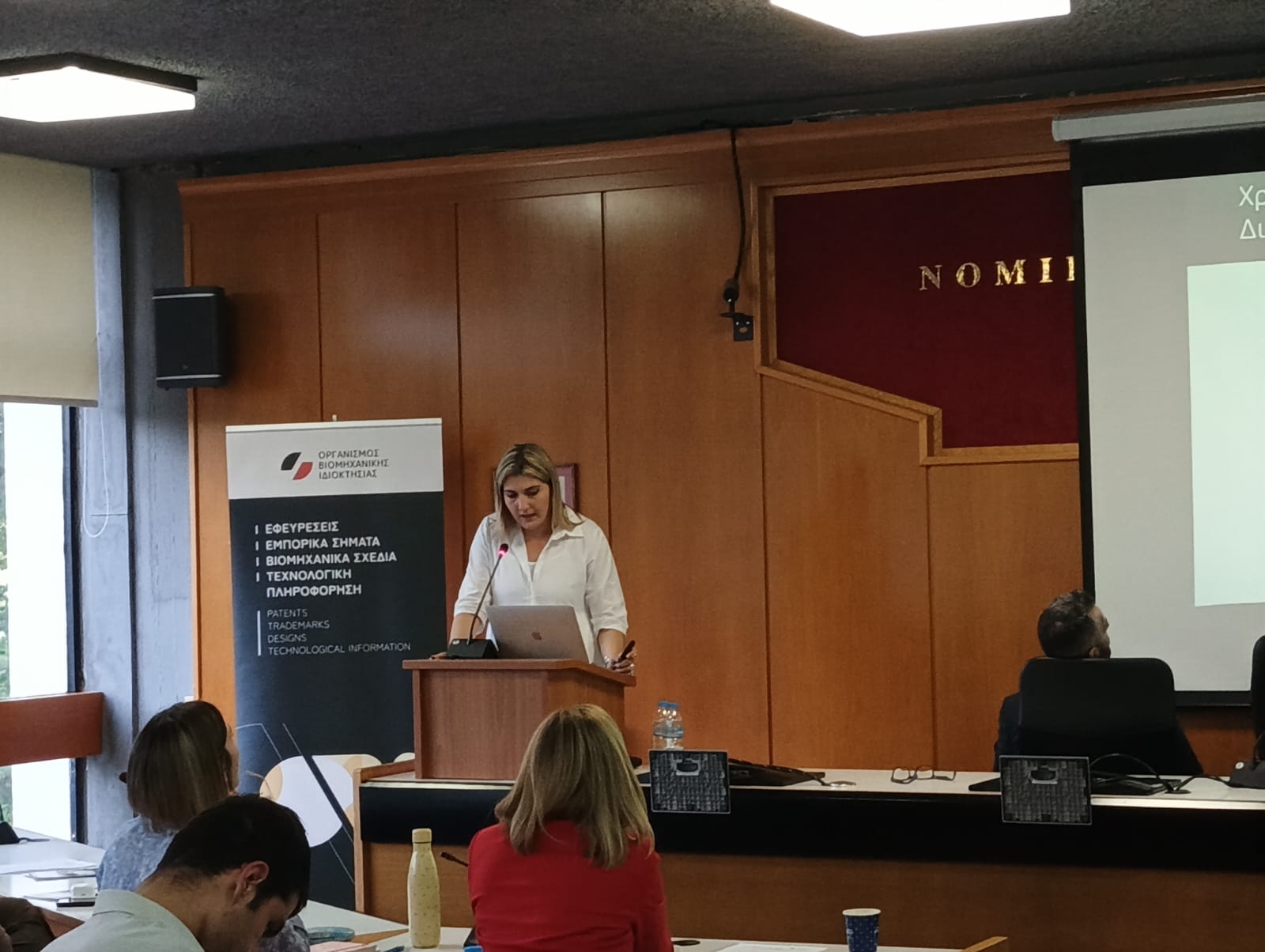 Ακολούθησε η τοποθέτησης της κυρίας Ματίνας Χρυσοχοΐδου, Διευθύντριας Εμπορικών Σημάτων ΟΒΙ, η οποία παρουσίασε στοιχεία για τη Διαδικασία Ενδίκων Μέσων ενώπιον των Διοικητικών Επιτροπών. Στη συνέχεια, στην πρόσφατη Νομολογία σχετικά με τα Ευρωπαϊκά Σήματα, έγινε αναφορά από την κυρία Θεοδώρα Σιμιτσή, Αναπληρώτρια Γενική Διευθύντρια ΟΒΙ.