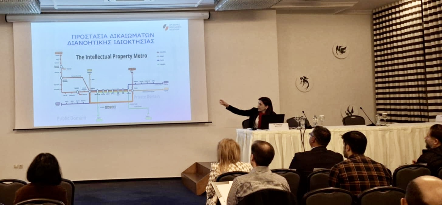 Χαιρετισμό εκ μέρους του ΟΒΙ παραγματοποίησε η κυρία Μυρτώ Λάμπρου Μάουρερ, Προϊσταμένη Διεθνών Θεμάτων στον ΟΒΙ, η οποία συντόνισε το σεμινάριο. Tόνισε τη σημασία της επιβολής των δικαιωμάτων διανοητικής ιδιοκτησίας για την αποτελεσματική προστασία τους. Στη συνέχεια ενημέρωσε τους παρευρισκόμενους για τα δικαιώματα βιομηχανικής ιδιοκτησίας και την προστασία που παρέχουν, επισημαίνοντας τι πρέπει να προσέχουν οι διωκτικές αρχές κατά την πραγματοποίηση ελέγχων. Παρουσίασε επίσης το Εθνικό Μητρώο Τίτλων του ΟΒΙ για την ανάκτηση πληροφοριών σχετικών με την ισχύ δικαιωμάτων.
