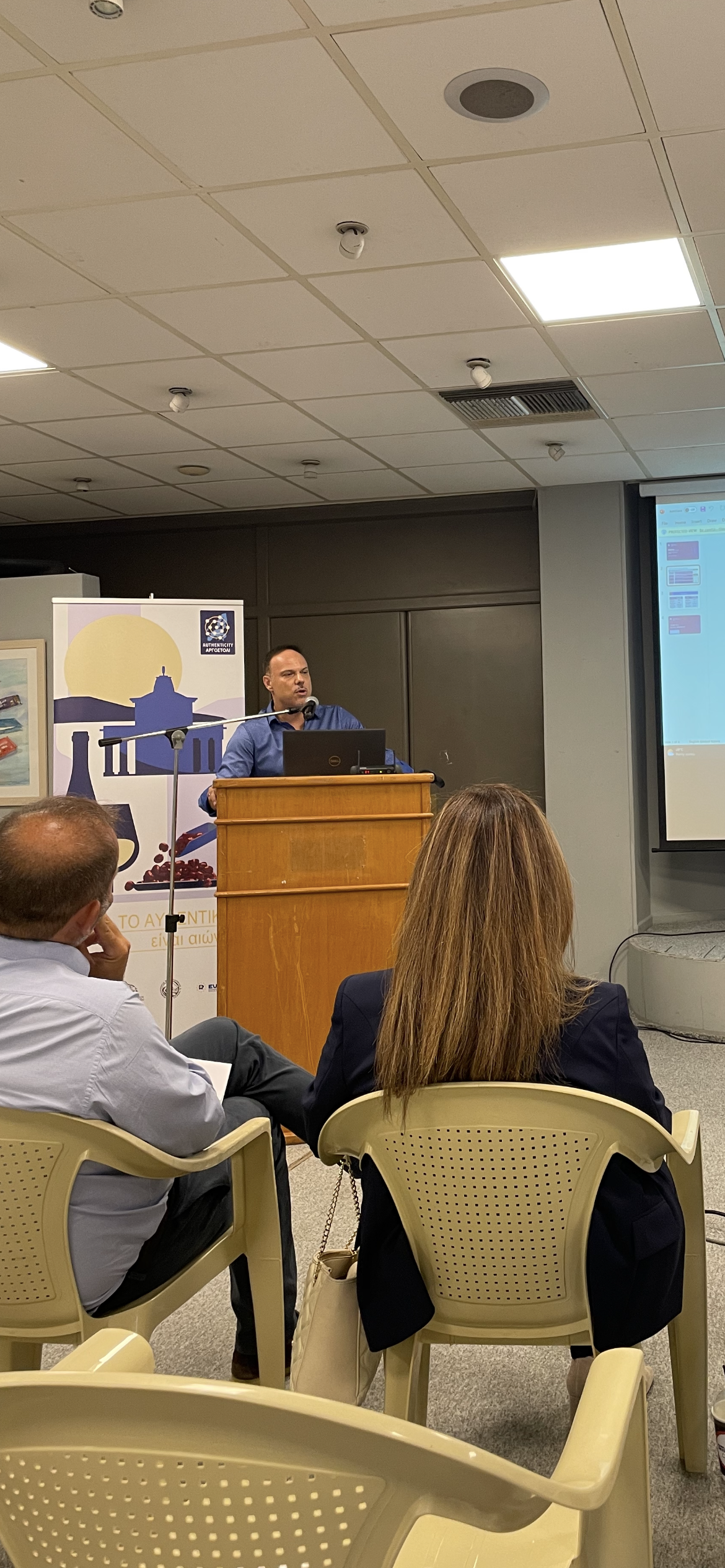 Η εκδήλωση ολοκληρώθηκε με την παρέμβαση του κ. Σπύρου Περιστέρη, Διευθυντή της Διυπηρεσιακής Μονάδας Ελέγχου Αγοράς (ΔΙΜΕΑ) του Υπουργείου Ανάπτυξης, ο οποίος παρουσίασε εισήγηση με θέμα «Authenticity σημαίνει: Καθαρή από απομιμητικά πόλη», και πρόβαλε στατιστικά στοιχεία ελέγχου αγοράς σε ό, τι αφορά τη Διανοητική Ιδιοκτησία. Συγκεκριμένα, ο κ. Περιστέρης ανάφερε πως ο ΟΒΙ έχει κάνει πολύ σημαντικά βήματα με τις 4 ενταγμένες πόλεις στο Δίκτυο των Authenticities, και μάλιστα όλες από μία χώρα, κάνοντας σύγκριση τη δράση άλλων χωρών. Για να υπογραμμίσει πως, αν και το Πρόγραμμα αυτό είναι στο πλαίσιο ενημέρωσης, στην ουσία τίθεται το θέμα προστασίας του καταναλωτή. Ο καταναλωτής πρέπει να ενημερώνεται ώστε να προστατεύεται. Στο κλείσιμο της παρουσίασης του, ανάφερε πως προσβλέπει στη συνεργασία όλων και κυρίως χρειάζεται να τηρείται ο Νόμος.